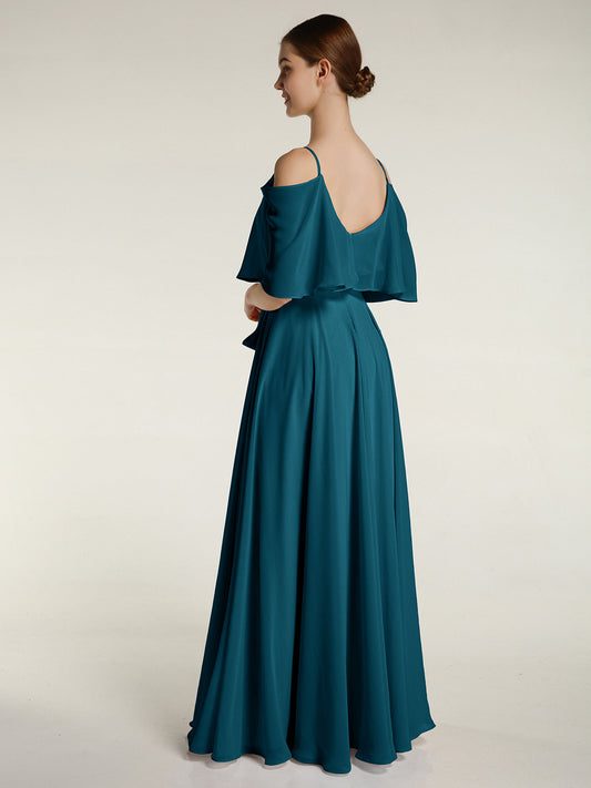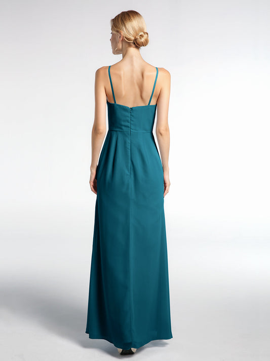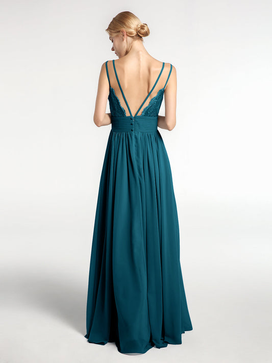 Babaroni CoraVestido largo de dama de honor de chiffon con tirantes dobles Azul tinta
