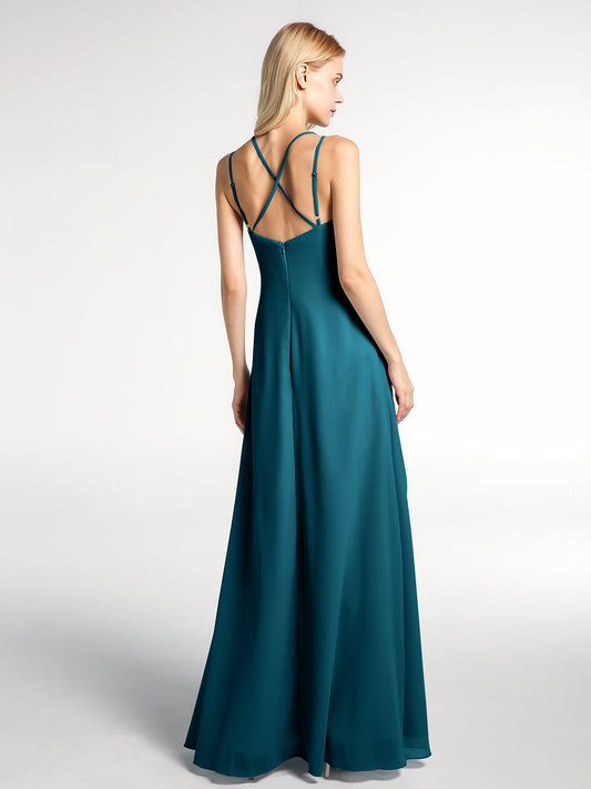 Babaroni NatalieVestido maxi simple de chiffon con escote en V y tirantes finos Azul tinta