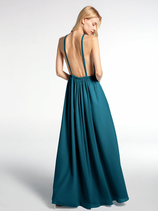 Babaroni ReneeVestido sexy maxi de chiffon con cuello halter y espalda baja Azul tinta