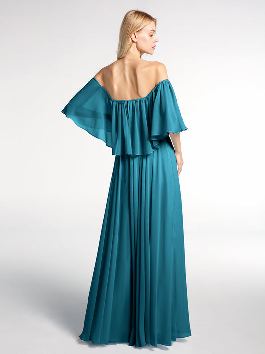 Babaroni RoseVestido maxi de chiffon con hombros descubiertos y volantes Azul tinta