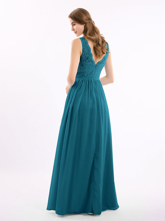 Babaroni AthenaVestidos largos con la parte superior de encaje y la parte inferior de chiffon Azul tinta