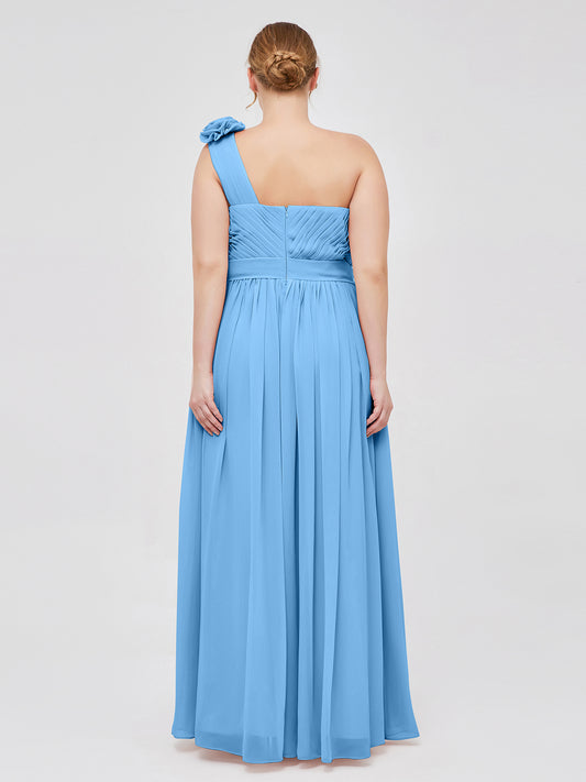 Babaroni MirabelleMirabelle Un Hombro Gasa Vestido Con Tirante Flores Azul