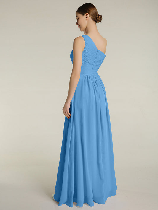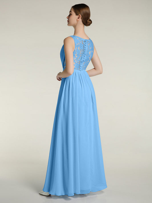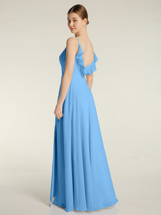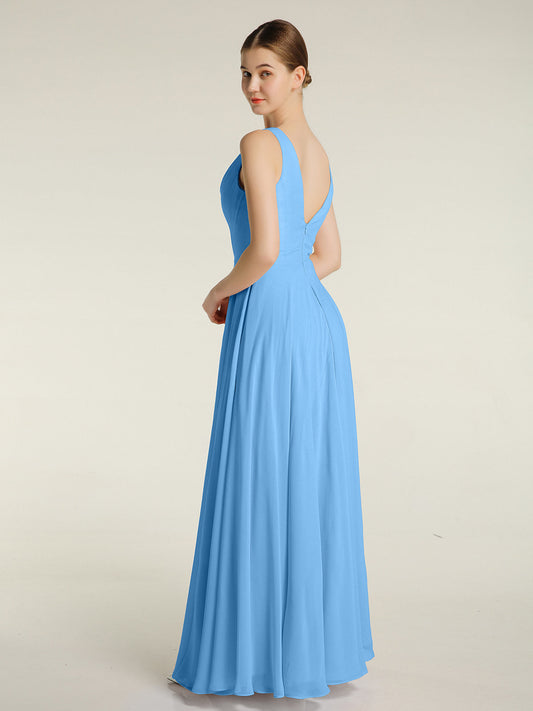 Babaroni MariaVestidos largos de chiffon de cuello en Y para damas de honor Azul
