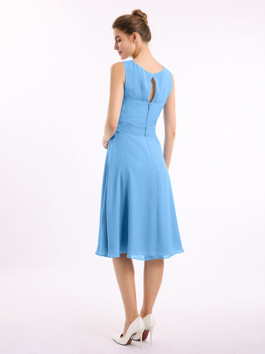 Babaroni IsobelVestido corto de chiffon con cuello tipo scoop y lazo de cinturón Azul