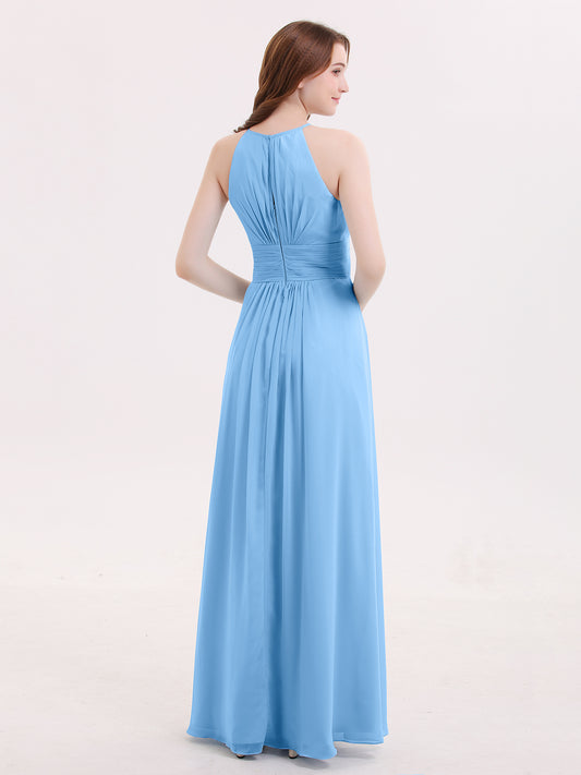Babaroni JodieJodie Cabestro Cuello Alto Gasa Vestido De Dama De Honor Azul