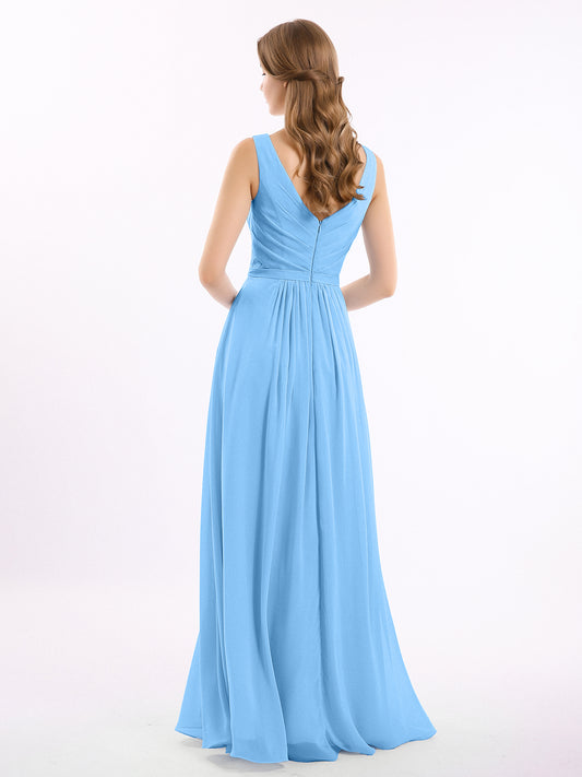 Babaroni GeorgiaGeorgia Escote En V Gasa Largo Vestido De Dama De Honor Azul