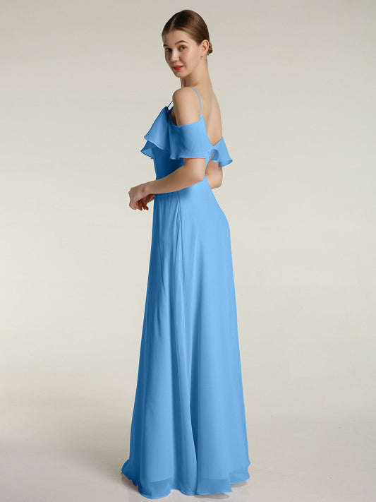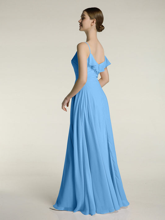 Babaroni JessicaVestidos de dama de honor de chiffon con tirantes finos Azul
