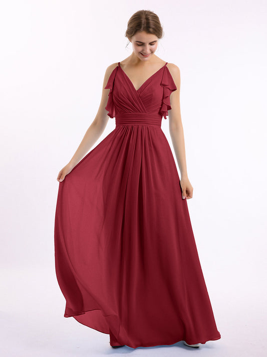 Babaroni VickyVestidos de dama de honor de chiffon con escote en V y tirantes finos Borgoña