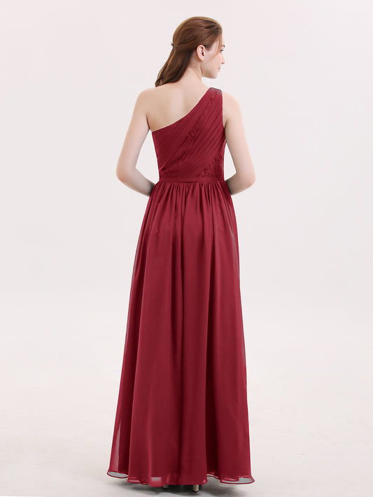 Babaroni PhoenixPhoenix Un Hombro Gasa Y Encaje Vestido De Dama De Honor Borgoña