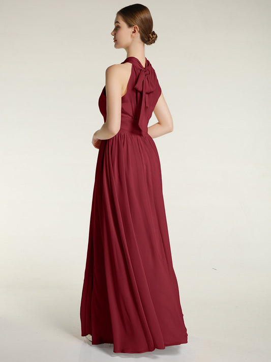 Babaroni TheraVestidos largos de dama de honor estilo halter de chiffon con espalda baja Borgoña