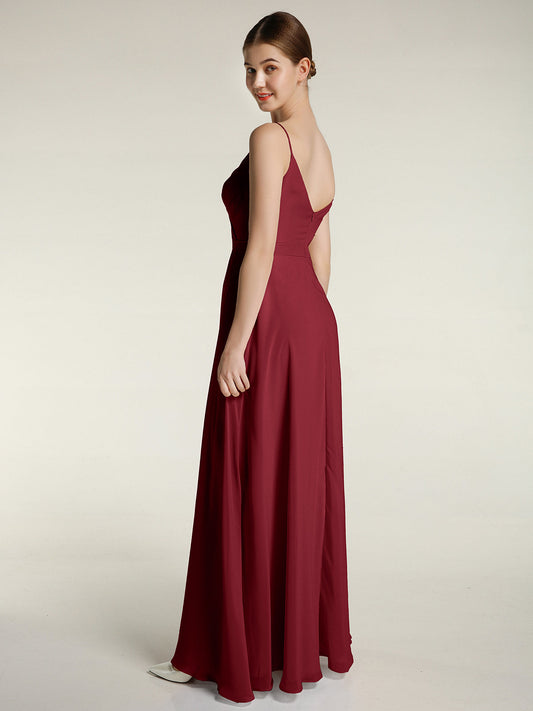 Babaroni NatalieVestido maxi simple de chiffon con escote en V y tirantes finos Borgoña