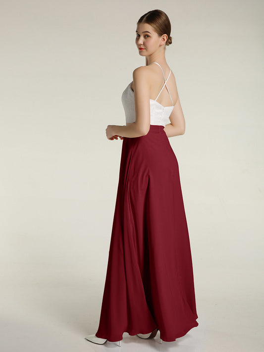 Babaroni MichaelaVestidos largos de chiffon estilo halter con abertura Borgoña