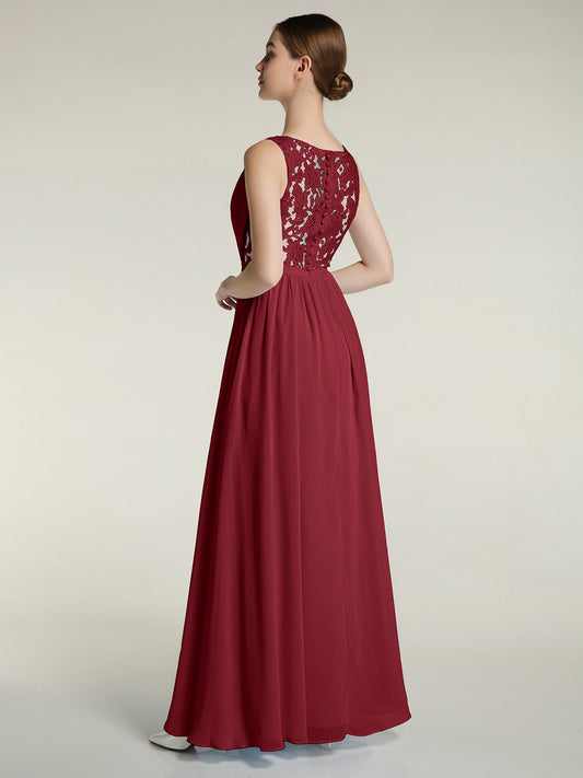 Babaroni MariaVestidos largos de chiffon de cuello en Y para damas de honor Borgoña