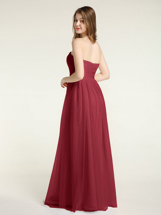 Babaroni ViolaVestidos largos de dama de honor sin tirantes con escote en corazón y falda de tul Borgoña