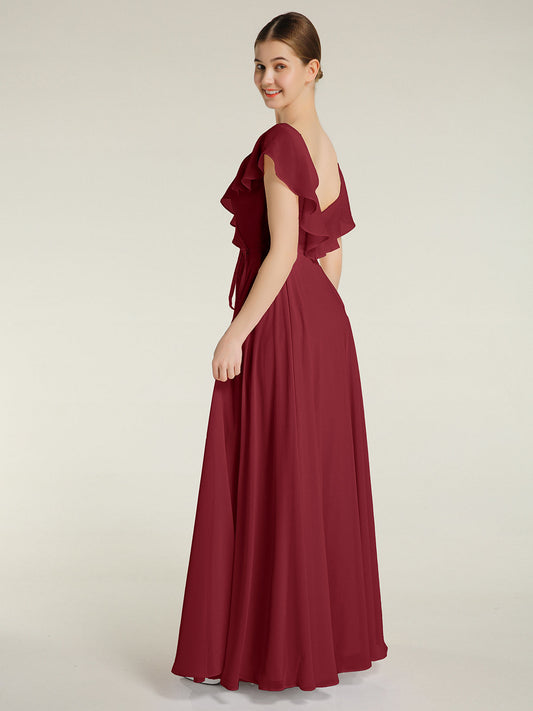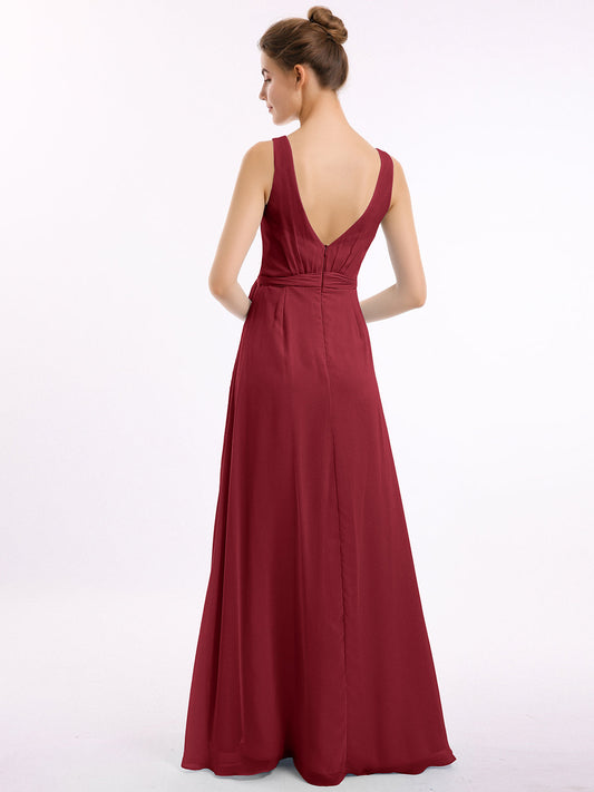 Babaroni LaurenVestidos largos de chiffon estilo princesa con abertura Borgoña