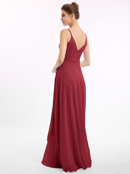 Babaroni LeeVestidos de dama de honor de chiffon con tirantes spaghetti y escote en V Borgoña