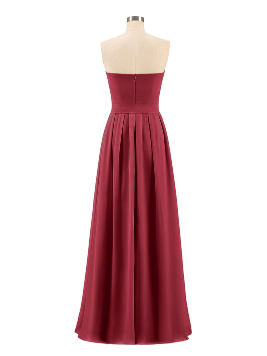 Babaroni FredericaFrederica Sin Tirante Gasa Largo Vestido De Dama De Honor Borgoña