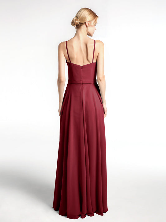 Babaroni EllaVestido sencillo de chiffon con tirantes finos y escote en forma de muesca Borgoña