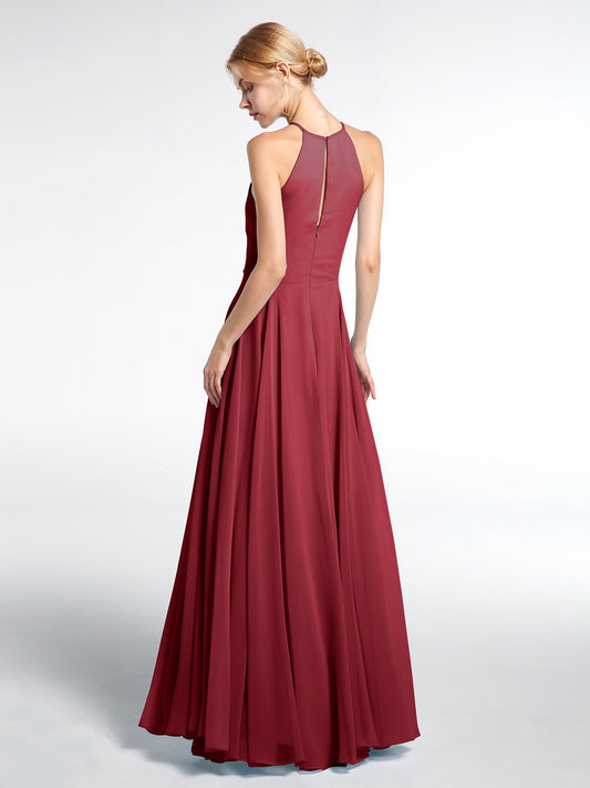 Babaroni SandraVestidos sencillos de dama de honor de chiffon con espalda baja Borgoña
