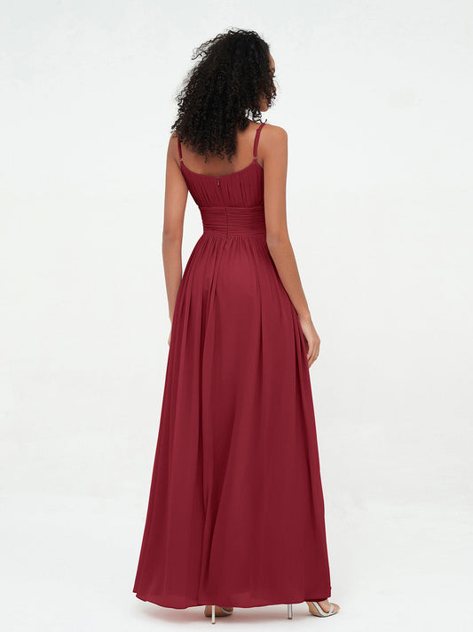 Babaroni LeeVestidos de dama de honor de chiffon con tirantes spaghetti y escote en V Borgoña