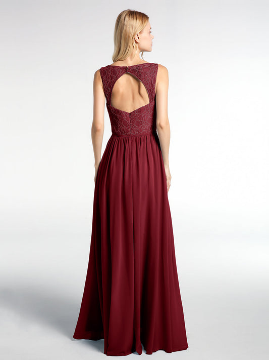 Babaroni LaraineVestido maxi con cuerpo de encaje y falda de chiffon con escote en V Borgoña