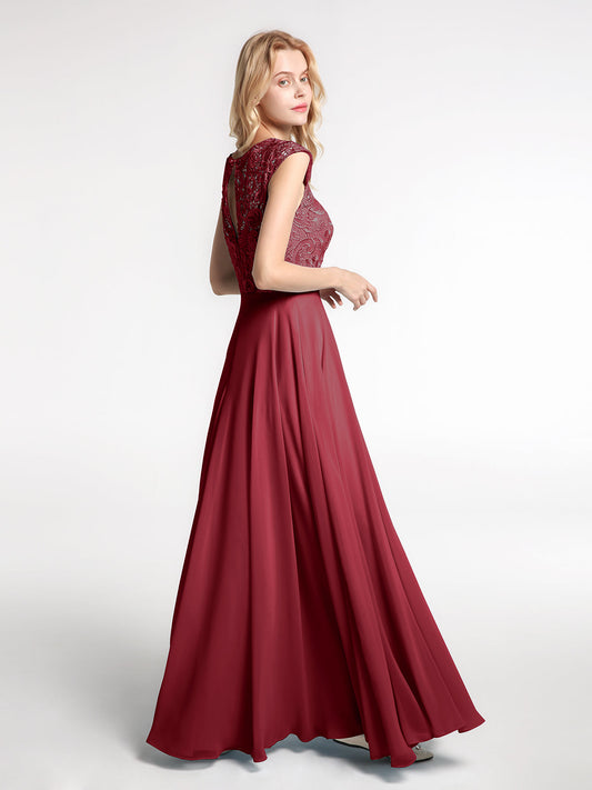 Babaroni PearlPearl Largos Vestidos De Dama De Honor Con Mangas De La Tapa Borgoña