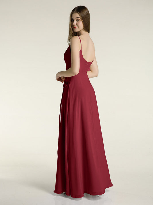 Babaroni MaudSencillos vestidos largos de chiffon con tirantes finos y abertura Borgoña