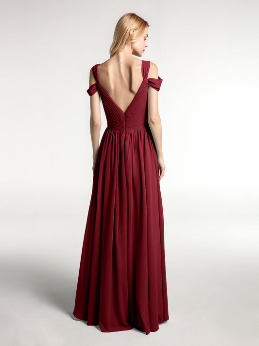 Babaroni EasterEaster Escote En V Maxi Gasa Vestidos Con Cremallera En Espalda Borgoña