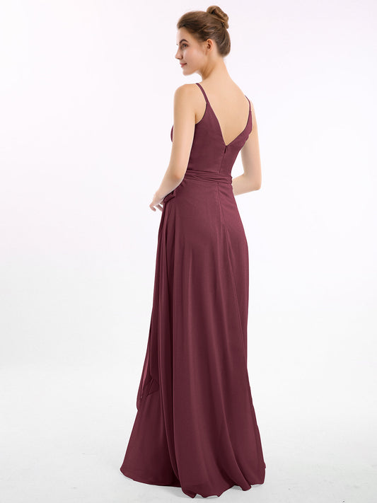 Babaroni LeeVestidos de dama de honor de chiffon con tirantes spaghetti y escote en V Cabernet