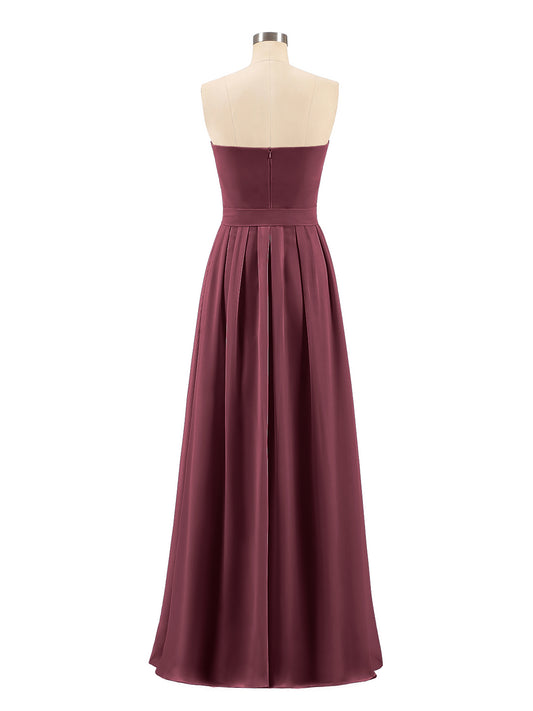 Babaroni FredericaFrederica Sin Tirante Gasa Largo Vestido De Dama De Honor Cabernet