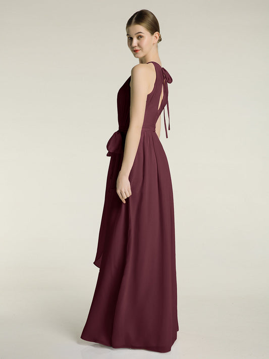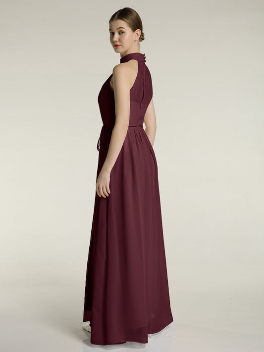 Babaroni MandyVestidos largos de chiffon estilo halter para damas de honor Cabernet