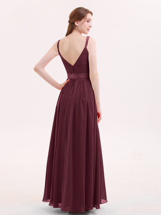 Babaroni KamaKama Escote En V Vestido De Dama De Honor Con Saten Faja Lazo Cabernet