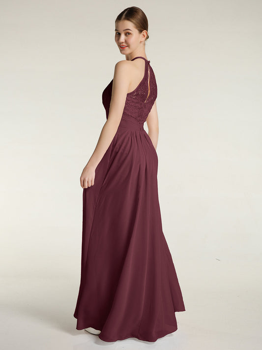 Babaroni AmandaVestidos largos de chiffon y encaje estilo halter Cabernet