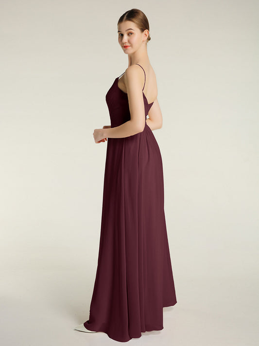 Babaroni FeliciaVestidos largos de chiffon con tirantes finos y escote en corazón Cabernet