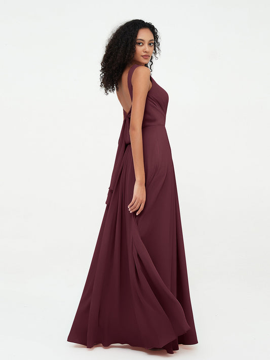 Babaroni VitaVestido de dama de honor de chiffon con escote en V y espalda descubierta Cabernet
