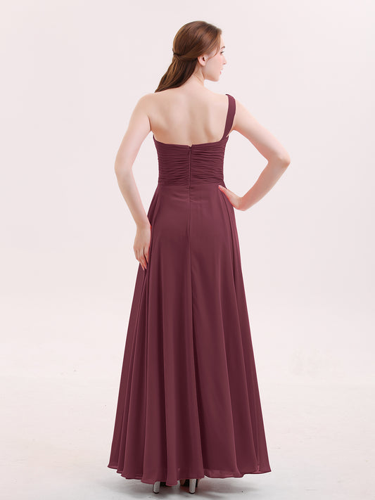 Babaroni YeddaYedda Un Hombro Gasa Largo Corte De Dama De Honor Cabernet