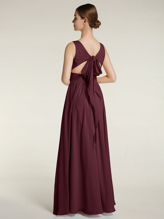 Babaroni HedyVestido largo de chiffon con escote en forma de V y cintura imperio Cabernet