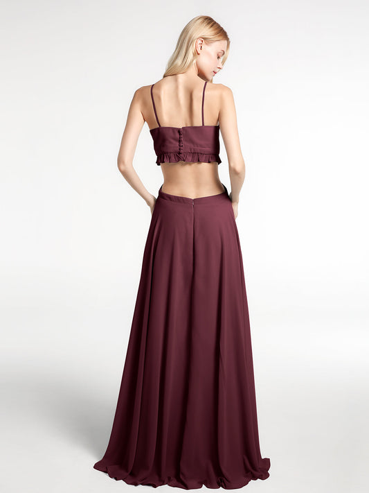 Babaroni EudoraVestido sexy maxi de chiffon con tirantes finos y detalles de volantes recortados Cabernet