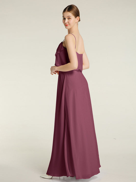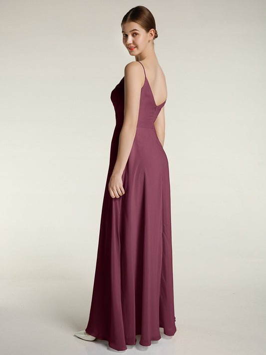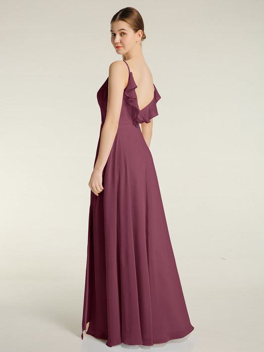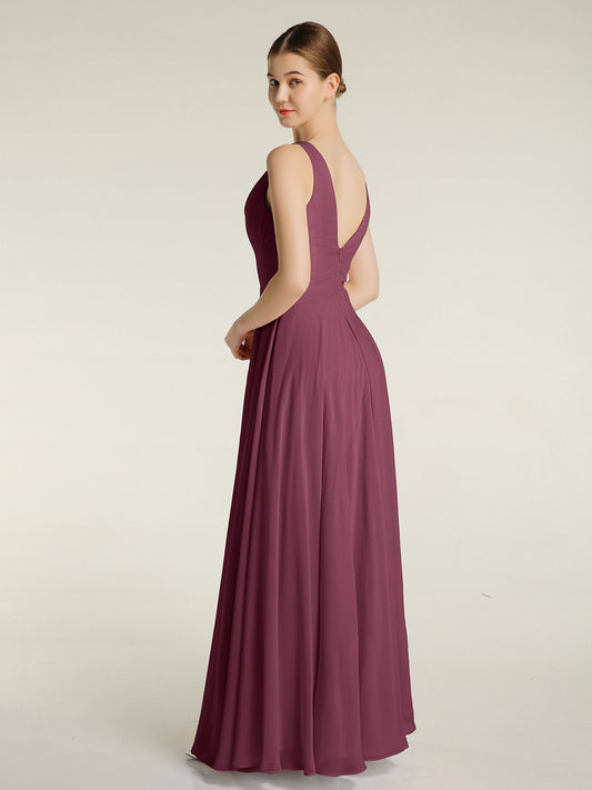Babaroni MariaVestidos largos de chiffon de cuello en Y para damas de honor Morado