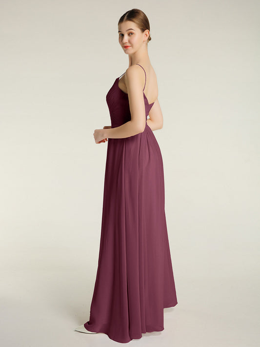 Babaroni GraceVestidos sencillos de dama de honor con tirantes finos Morado