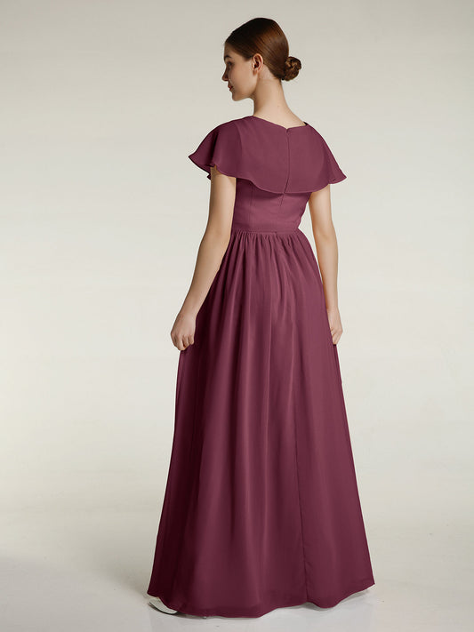 Babaroni GemmaVestidos largos de chiffon con mangas cap y abertura Morado