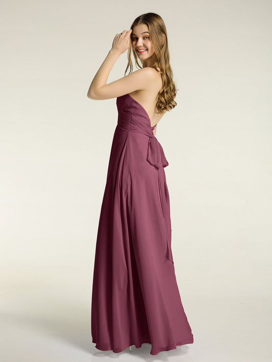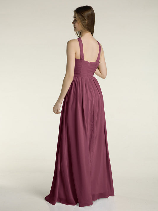 Babaroni MandyVestidos largos de chiffon estilo halter para damas de honor Morado