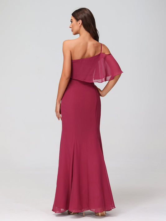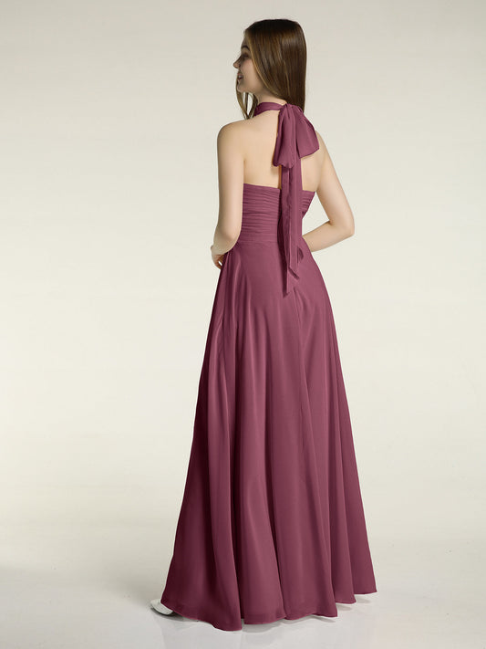 Babaroni TheraVestidos largos de dama de honor estilo halter de chiffon con espalda baja Morado