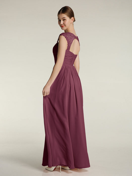Babaroni HelenVestidos de chiffon con escote en corazón y mangas cap de encaje Morado