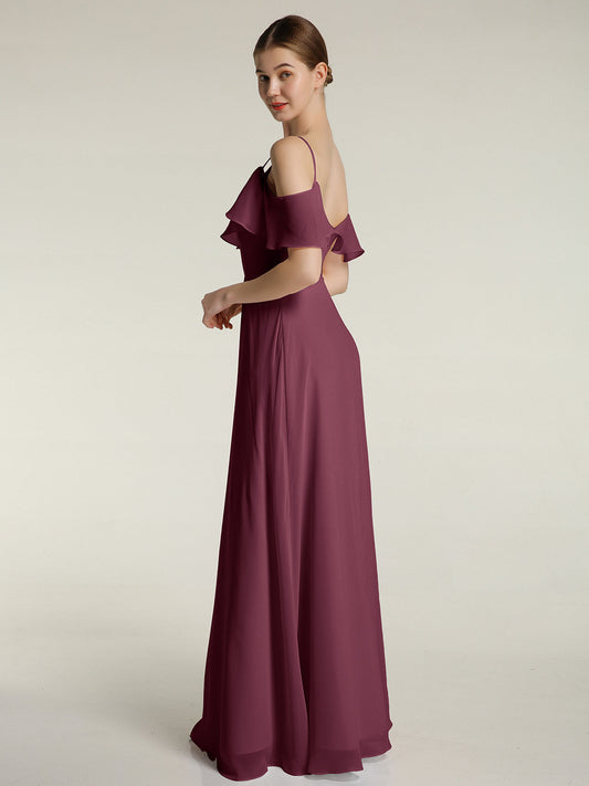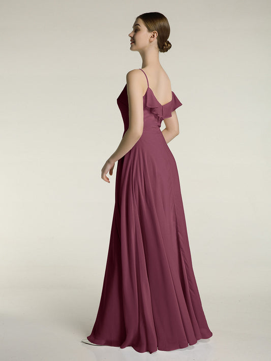 Babaroni JessicaVestidos de dama de honor de chiffon con tirantes finos Morado