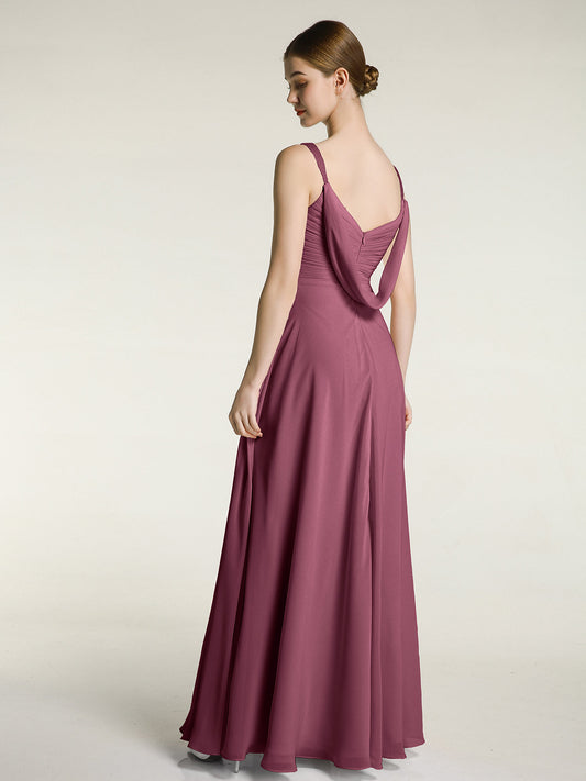 Babaroni JuliaVestidos largos de chiffon con tirantes finos y escote en V Morado