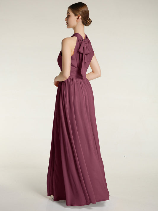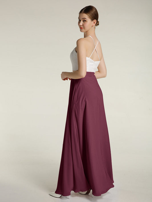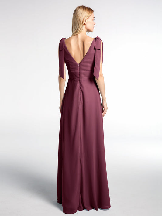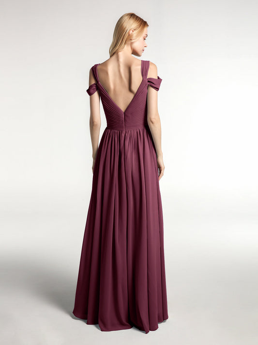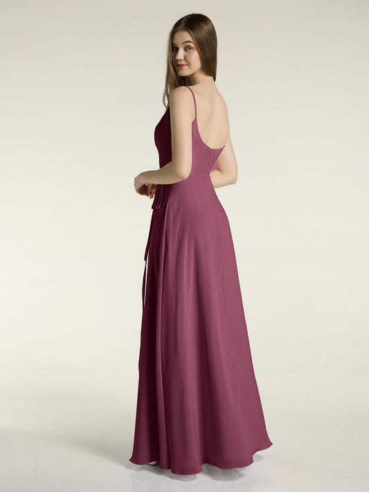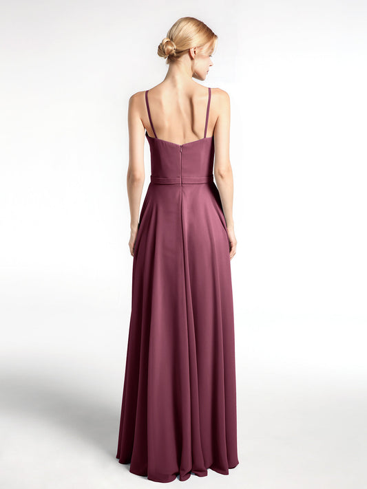 Babaroni MaudSencillos vestidos largos de chiffon con tirantes finos y abertura Morado