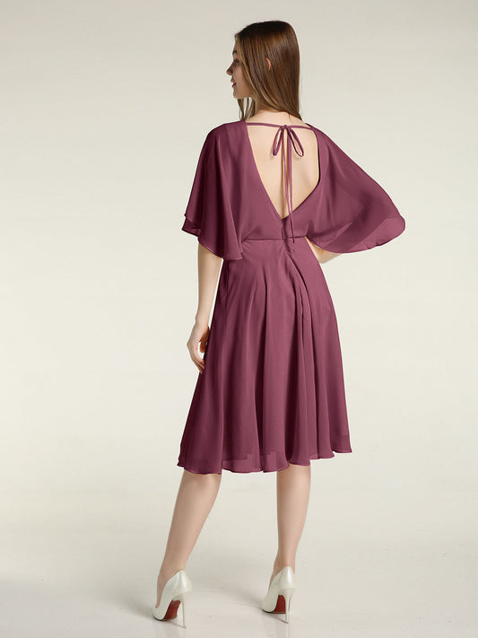 Babaroni SelenaVestidos cortos de chiffon con escote tipo scoop y mangas de volantes Morado