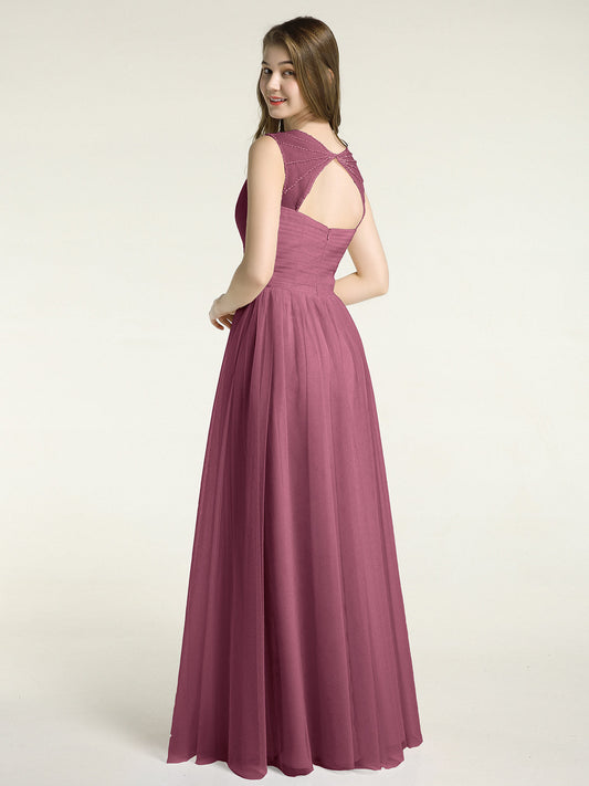Babaroni VeraVestidos largos de tul cruzado plisado con tirantes decorados con cuentas Morado