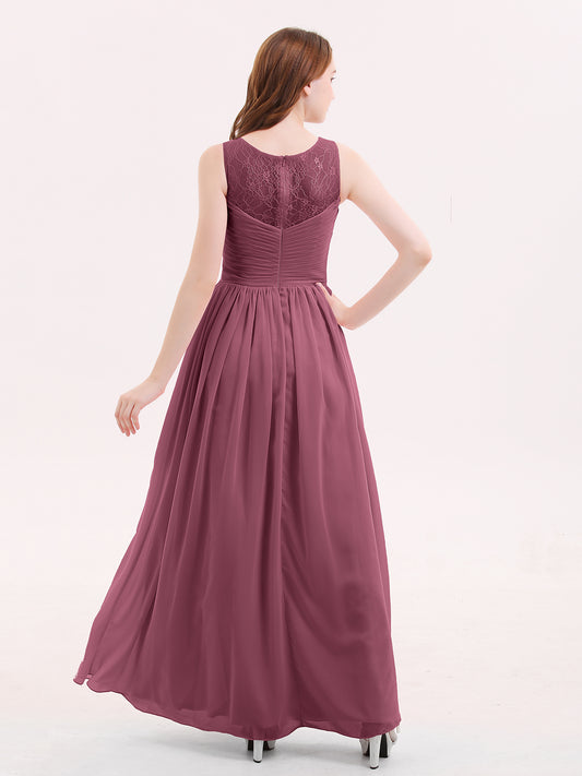 Babaroni GwendolynGwendolyn Encaje Y Gasa Largo Corte De Dama De Honor Morado